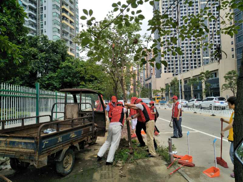 來到社區,金羚的義工都熱情高漲,立即在社區義工的指引下有條不紊地投入工作。他們深入社區街道和小區各處,先重點清除臺風暴雨帶來的淤泥和各種垃圾,再仔細進行清掃,不留一點衛生死角。所到之處,臺風暴雨痕跡逐漸消失,社區面貌再現往日美麗。