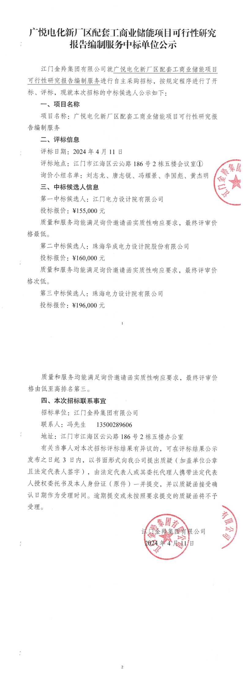 廣悅電化新廠區配套工商業儲能項目可行性研究報告編制服務中標單位公示