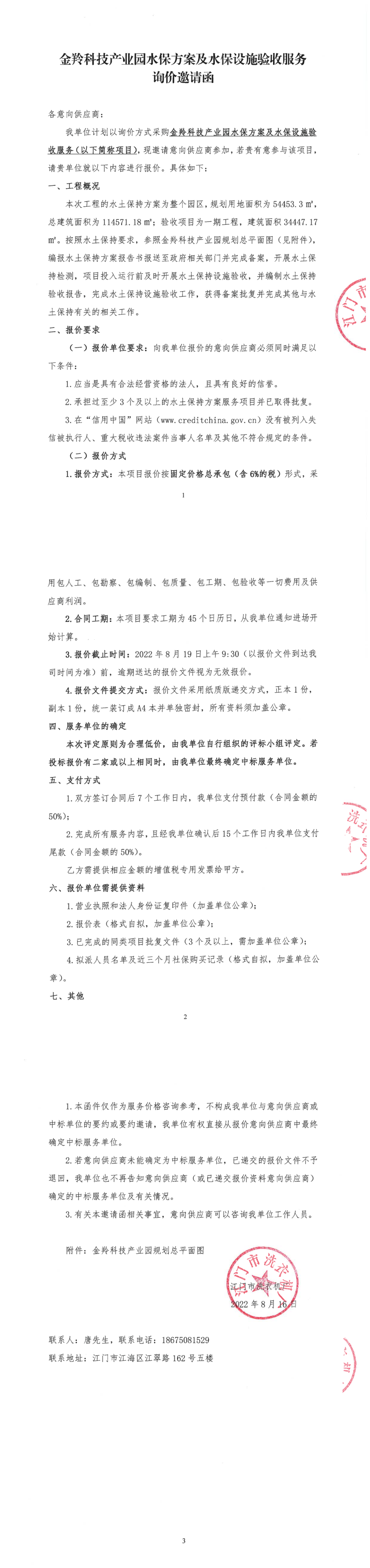金羚科技產(chǎn)業(yè)園水保方案及水保設(shè)施驗收服務(wù)詢價邀請函