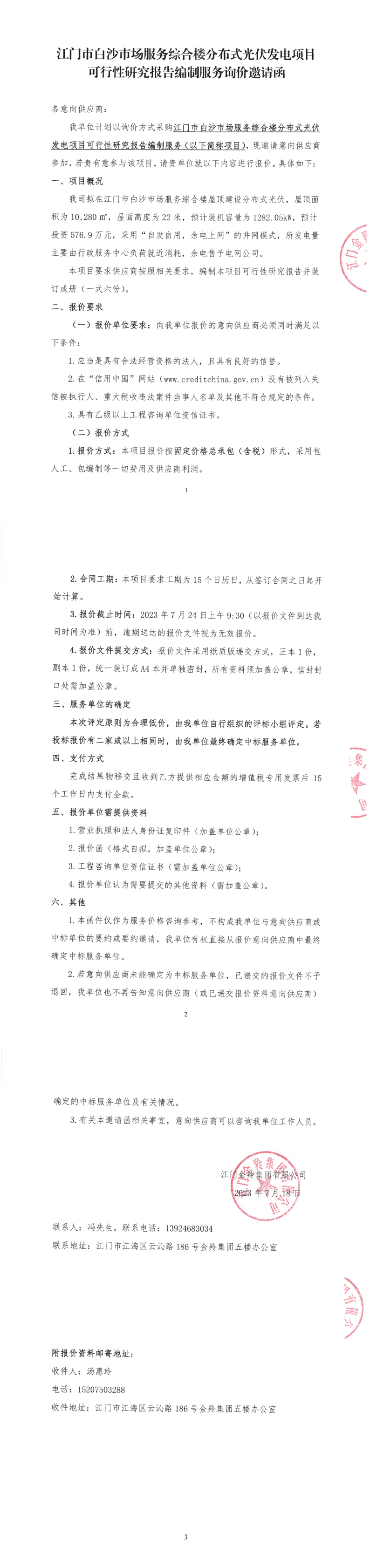 江門市白沙市場服務綜合樓分布式光伏發(fā)電項目可行性研究報告編制服務詢價邀請函