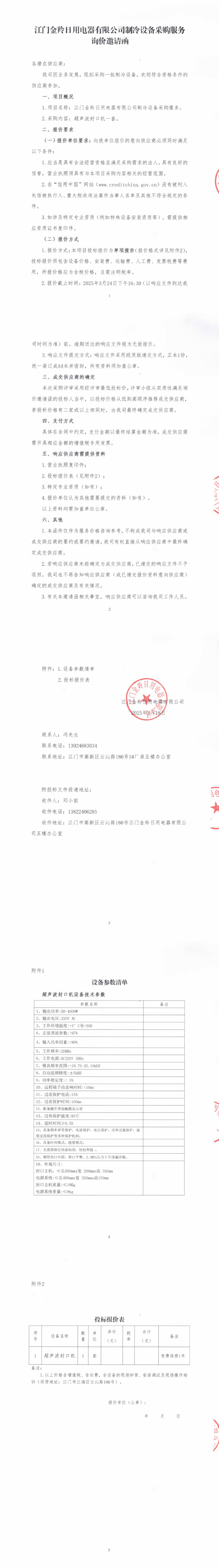 江門金羚日用電器有限公司制冷設備采購服務詢價邀請函